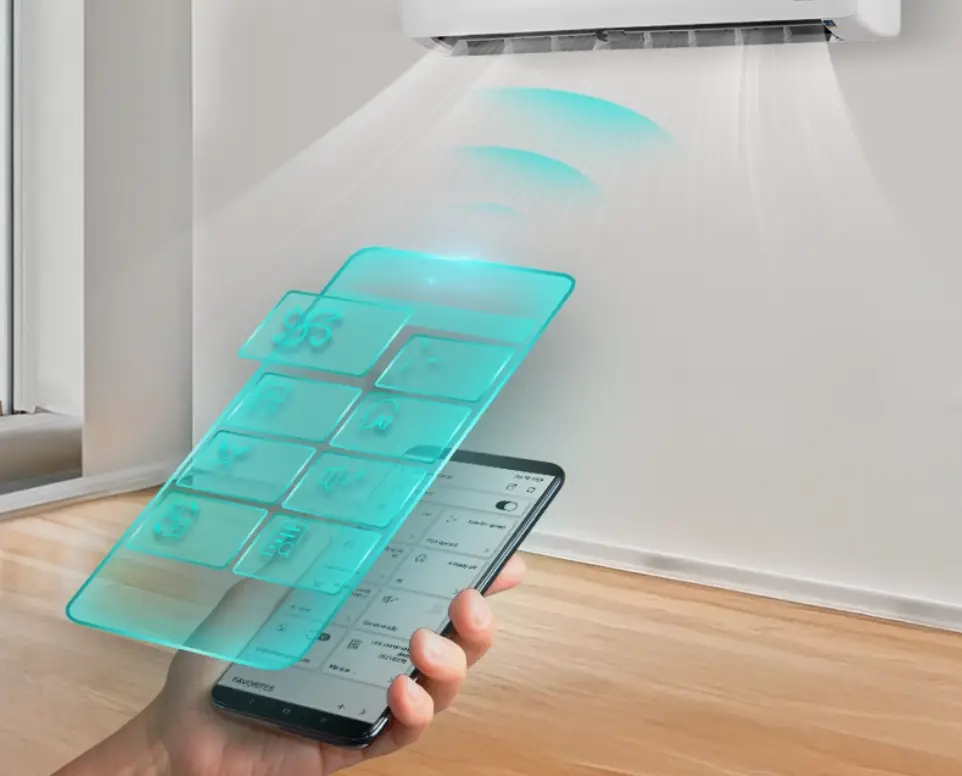 A temperatura e a velocidade do ventilador são ajustadas automaticamente com base na temperatura do ambiente. Os sensores inteligentes do ar-condicionado garantem a operação mais eficiente possível.